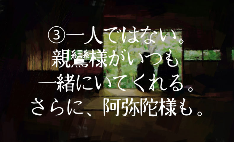 ③一人ではない。親鸞様がいつも一緒にいてくれる。さらに、阿弥陀様も。