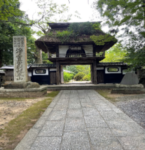 山門の石碑に別格本山、親鸞聖人の主著「教行信証」製作(草稿文)の地と刻まれている。